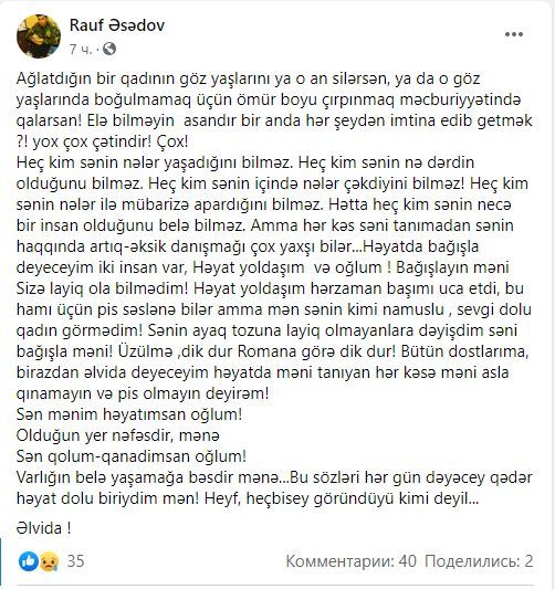 Sabirabadda intihar edən 31 yaşlı Rauf Əsədov hadisədən əvvəl son sözlərini yazıb.