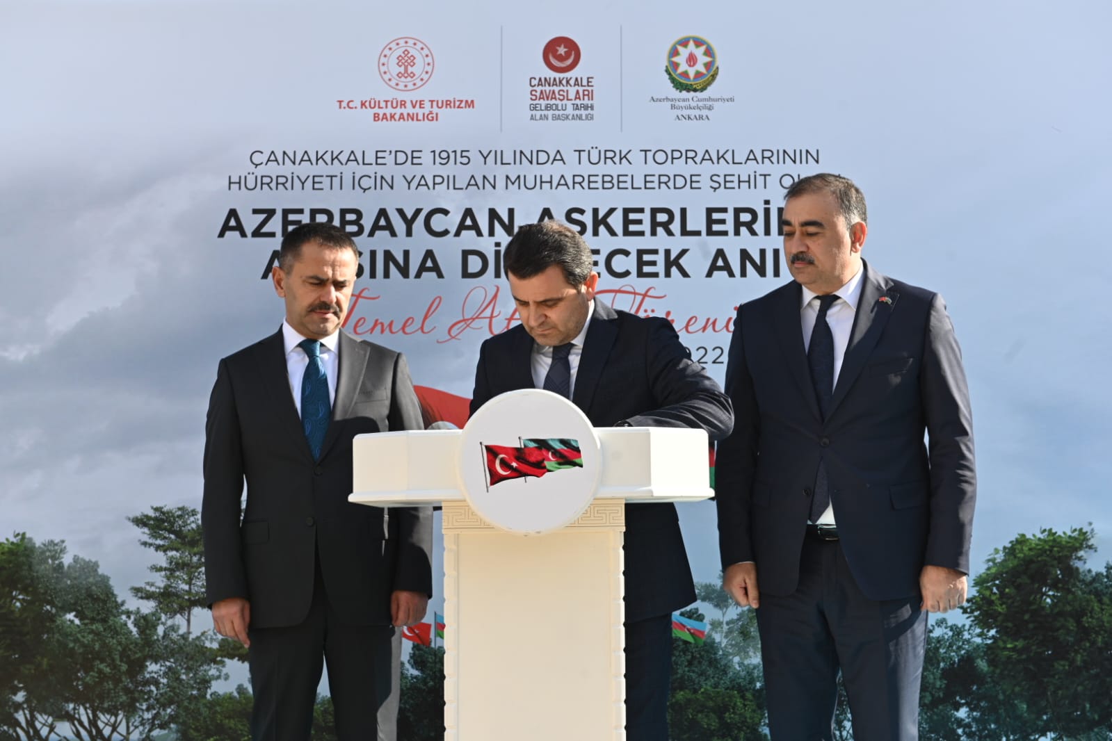 1915-ci ildə türk torpaqlarının azadlığı uğrunda gedən döyüşlərdə şəhid olan Azərbaycan əsgərlərinin xatirəsinə Çanaqqalada ucaldılacaq abidənin təməlqoyma mərasimi keçirilib.