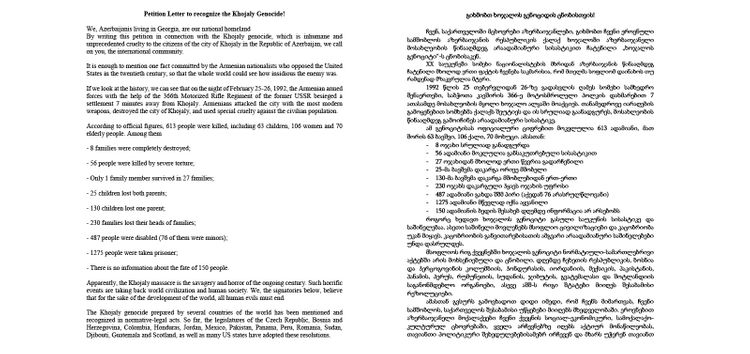 Azərbaycan əsilli vətəndaşların ölkənin ictimai-siyasi, sosial-iqtisadi və mədəni həyatında fəal iştirak etdiyini, onun inkişafına var qüvvələrilə xidmət göstərdiklərini xatırladan soydaşlarımız Gürcüstan parlamentini bu qəddar çinayətə səssiz qalmamağa səsləyib: