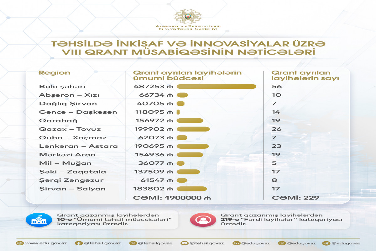 Təhsildə inkişaf və innovasiyalar üzrə VIII qrant müsabiqəsinin nəticələri elan olunub.