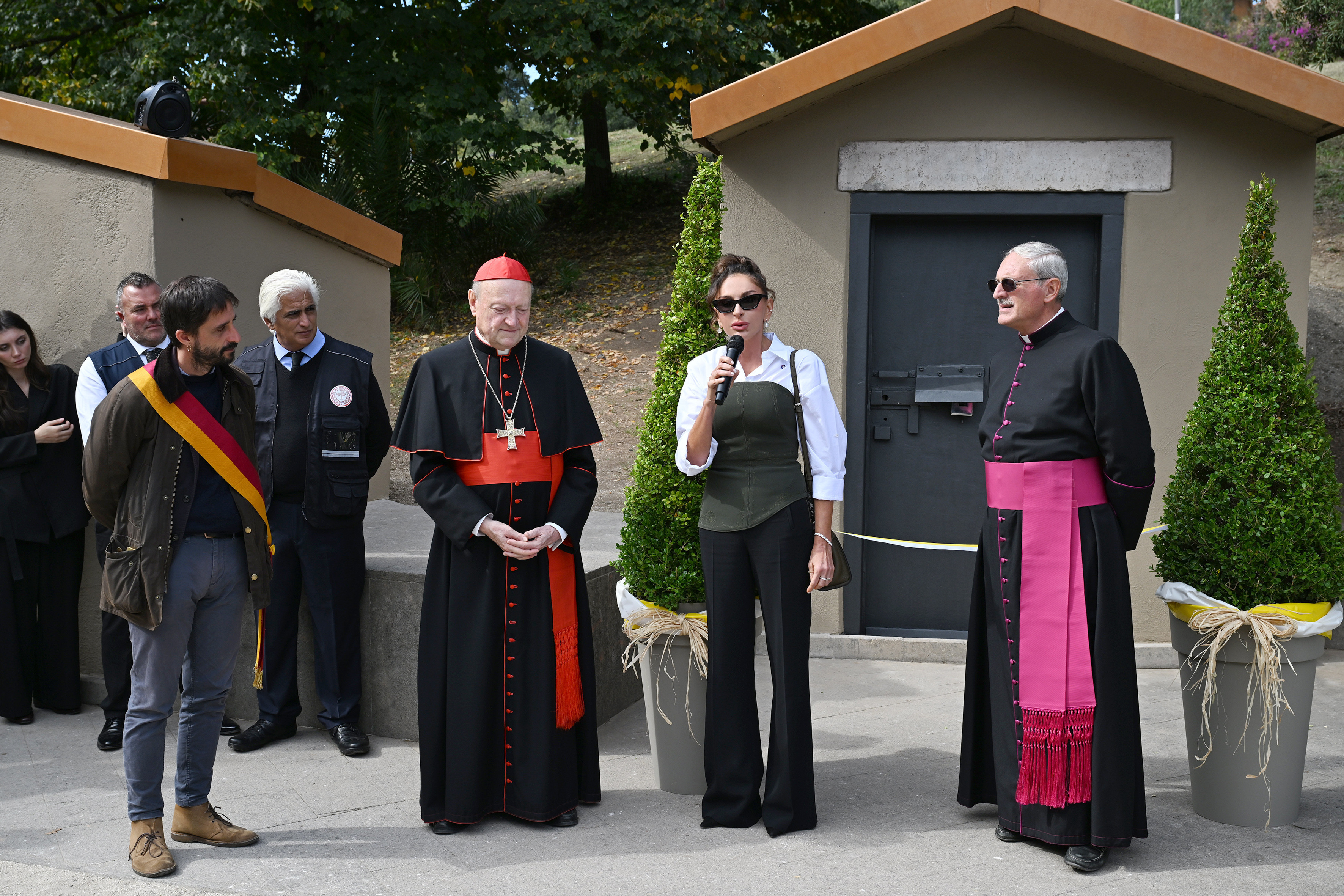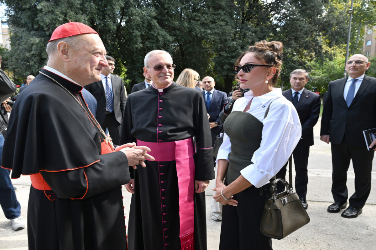 Vatikanın Müqəddəs Arxeologiya üzrə Pontifik Komissiyasının prezidenti Monsenyor Paskuale Yakabone, Mədəniyyət və Müqəddəs Arxeologiya üzrə Pontifik Komissiyasının sabiq prezidenti kardinal Canfranko Ravazi və Roma şəhərinin VIII bələdiyyəsinin prezidenti Amedeo Çakkeri Birinci Vitse-prezident Mehriban Əliyevanı qarşıladılar.