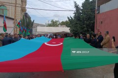 Binəqədidə Xocavənddə minaya düşərək şəhid olan polis serjantı ilə vida mərasimi keçirilir
