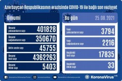 Azərbaycanda son gündə 2 945 nəfər yoluxub,32 nəfər koronavirusdan vəfat edib