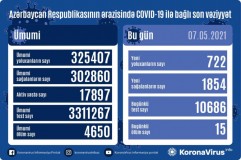 Azərbaycanda daha 1854 nəfər COVID-19-dan sağalıb, 722 nəfər yoluxub