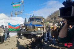Xankəndi-Laçın yolunda aksiya keçirilən yerdən sülhməramlılar üçün təminat yükü maneəsiz hərəkət edib - VİDEO