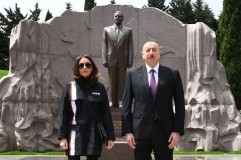 Prezident və birinci xanım Ümummilli Lider Heydər Əliyevin məzarını ziyarət ediblər
