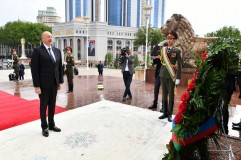 Prezident İlham Əliyev Düşənbədə İsmoili Somoni abidəsini ziyarət edib
