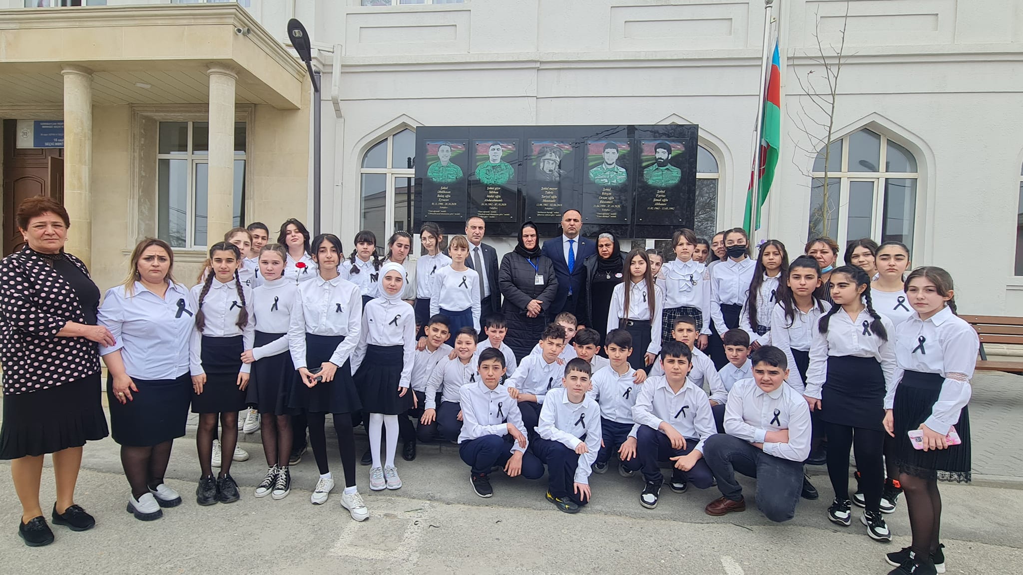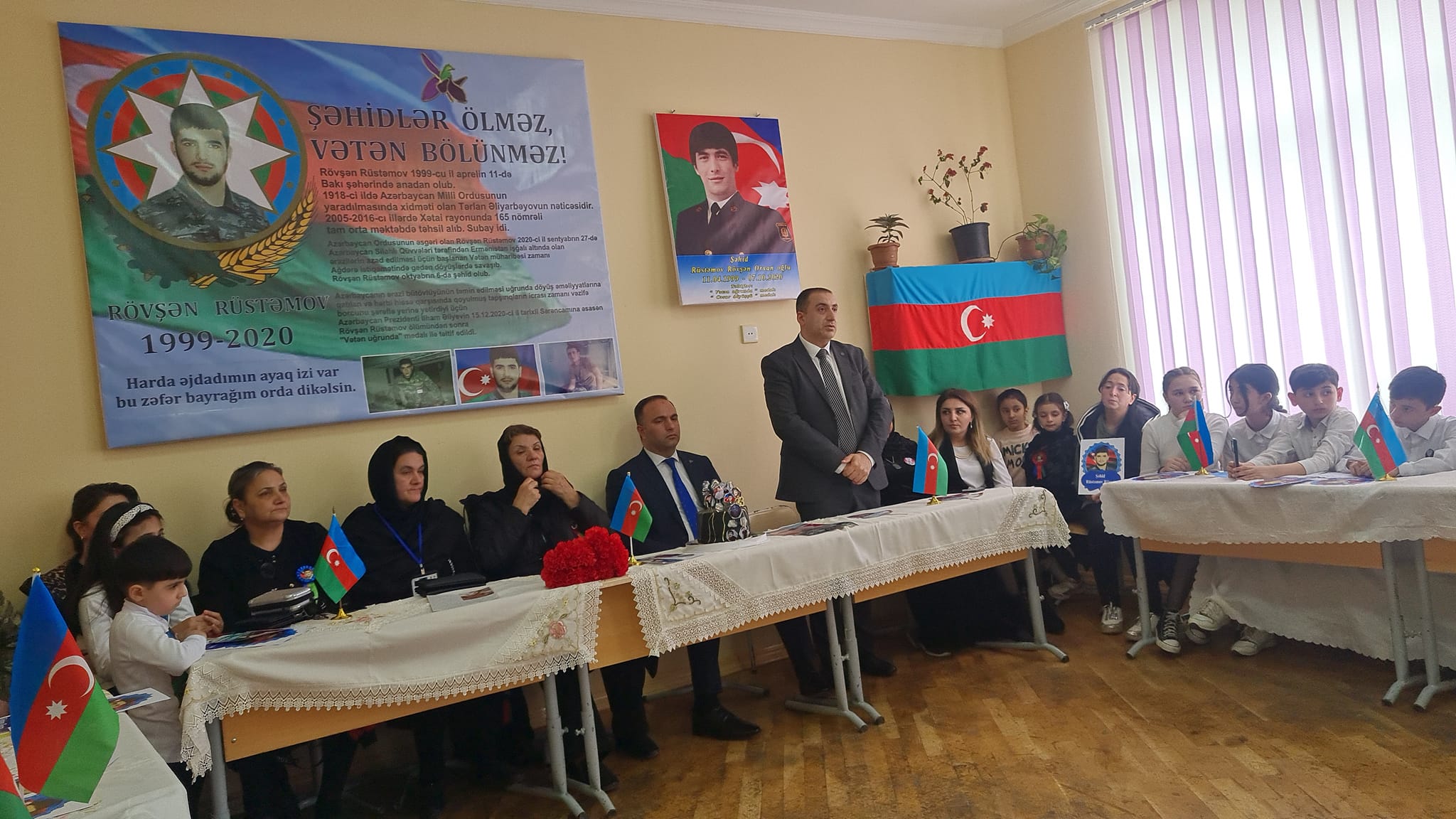 Şəhid Rövşən Rüstəmovun adını daşıyan rus bölməsinin 6F və 7F sinif şagirdləri Səttarova Mehriban müəllimin rəhbərliyi ilə keçirilən tədbir Azərbaycan Fövlət Himni ilə başladı,sonra şəhidlərimizin əziz xatirəsi bir dəqiqəlik sükutla yad edildi, şagirdlər şəhid Rövşən Rüstəmovun həyatı, hərbi xidmətləri haqqında məlumat verdi.