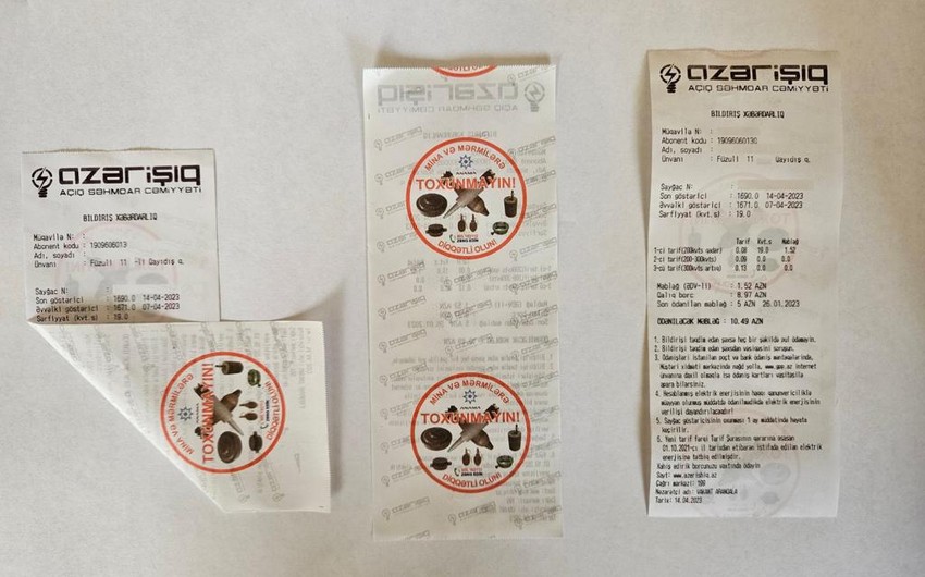 Belə ki, “Azərişıq” ASC tərəfindən abonentlərə təqdim olunan enerji istehlakına dair bildiriş qəbzlərinin arxa hissəsində ANAMA ilə razılaşdırılmış xəbərdaredici və maarifləndirici məlumatların çap edilməsinə başlanılıb.