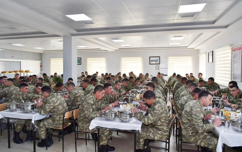 Bunu Müdafiə Nazirliyinin Maddi-Texniki Təminat Baş İdarəsinin xidmət rəisi polkovnik Eldəniz Yəhyayev hərbi qulluqçuların qida rasionu, təminatı, o cümlədən ərzaqların saxlanması şəraiti ilə bağlı deyib.