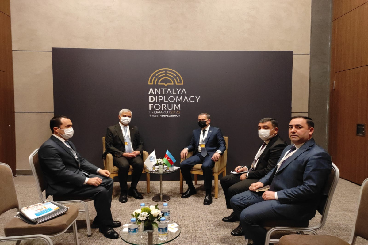 11 mart 2022-ci il tarixində Antalya Diplomatiya Forumunda iştirakı çərçivəsində Azərbaycan Respublikasının xarici işlər naziri Ceyhun Bayramov və İqtisadi Əməkdaşlıq Təşkilatının (İƏT) Baş katibi Xusrav Noziri arasında görüş keçirilib.