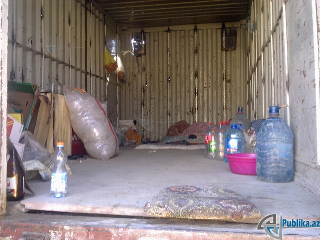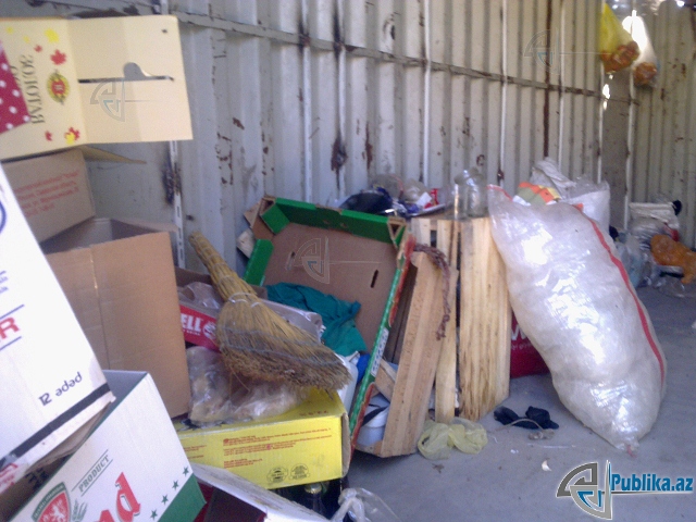 İçəri o qədər natəmizdir ki, milçəklərin əlindən tərpənmək mümkün deyil. Hələ ayaqyolu kimi istifadə edilmiş konteynerin içindəki üfunəti demirik. Təbii ki, ətrafdakı zibilliyin də iyi bir yandan.
