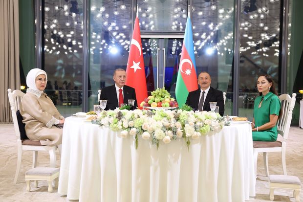 Bu dəqiqələrdə Bakıda, “Gülüstan” sarayında Azərbaycan Respublikasının Prezidenti İlham Əliyevin və birinci xanım Mehriban Əliyevanın adından Azərbaycan Prezidentinin dəvəti ilə ölkəmizdə dövlət səfərində olan Türkiyə Respublikasının Prezidenti Rəcəb Tayyib Ərdoğanın və birinci xanım Əminə Ərdoğanın şərəfinə dövlət ziyafəti verilir.