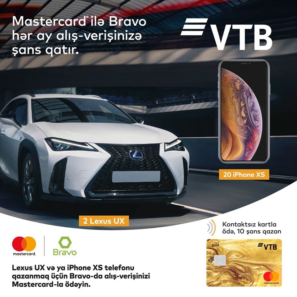Bank VTB (Azərbaycan)-ın MasterCard ödəniş kartının sahibi Bravo supermarketlər şəbəkəsində nağdsız alış-veriş edənlər arasında keçirilən lotereyanın qalibi olub. Qalib, İsmayılova Naidə hədiyyə qismində iPhone XS telefonunu qazanıb.
