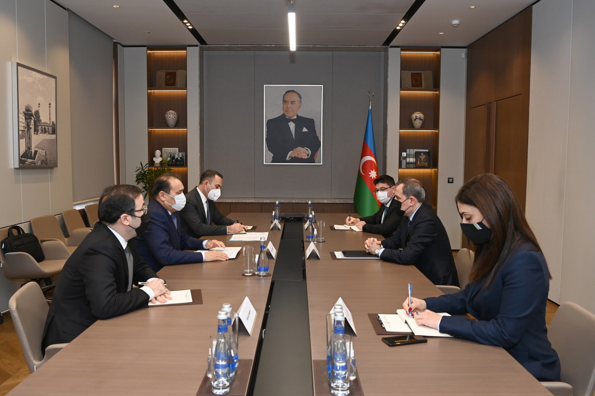 Bölgədəki cari vəziyyətlə bağlı qarşı tərəfə məlumat verən nazir, o cümlədən azad edilmiş ərazilərdə həyata keçirilən bərpa və quruculuq işlərindən bəhs edib. Bu xüsusda, Türk Dövlətləri Təşkilatının üzv ölkələrinin infrastrukturun qurulması prosesində iştirakının önəmli olduğu qarşı tərəfin diqqətinə çatdırılıb.