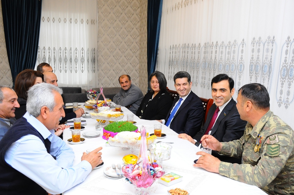 Natiqlər, səmimi söhbət zamanı ailələrin bayramlarını təbrik edib, xoş arzularını çatdırıblar. Müzəffər Ali Baş Komandan cənab İlham Əliyevin rəhbərliyi ilə 30 il sonra ölkəmizin ərazi bütövlüyünün bərpa olunduğu, adları Vətən tarixinə qızıl hərflərlə yazılan şəhidlərimizin daim hörmət və ehtiramla yad edildiyini, gələcək nəsillərə örnək olduğunu qeyd ediblər.