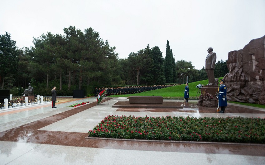 Ulu Öndərin məzarı önünə gül dəstələri qoyulub, əziz xatirəsi böyük ehtiramla yad edilib.