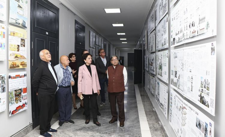 Görüşdən sonra qonaqlar rektor Gülçöhrə Məmmədova və Memarlıq fakültəsinin professor-müəllim heyətinin müşayiəti ilə fakültənin maddi-texniki bazası, tədris laboratoriyaları, tələbələrin kurs işləri, müxtəlif zamanlarda müəllim və tələbələr tərəfindən icra edilən layihələrin eskizləri ilə tanış olublar. Tanışlıqdan sonra lokal müzakirələr təşkil olunub və xarici memarların fakültə ilə əməkdaşlıq imkanları müzakirə edilib.