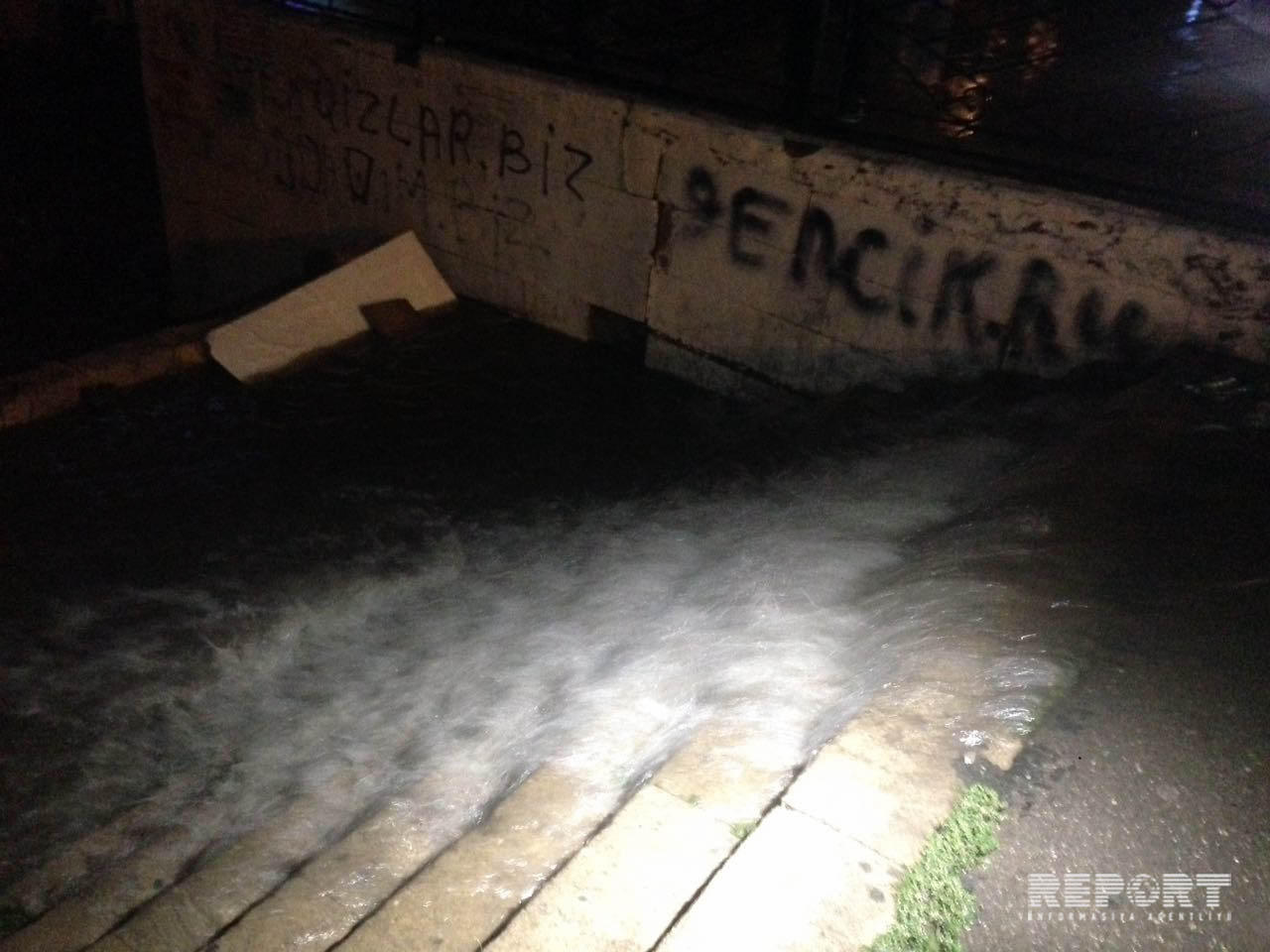 "Report" xəbər verir ki, Bakının Yasamal rayonu ərazisindən keçən Şərifzadə küçəsinin "İnşaatçılar" metrostansiyası yaxınlığında bir neçə avtomobil xarab olaraq su basmış yolda qalıb.