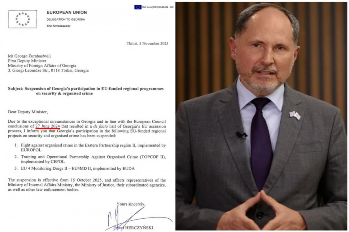 Bu barədə “Rustavi 2” telekanalının əldə etdiyi Aİ-nin Gürcüstandakı səfiri Pavel Herçenskinin ölkənin Xarici İşlər Nazirliyinə ünvanladığı 5 noyabr 2025-ci il tarixli məktubdan məlum olub.