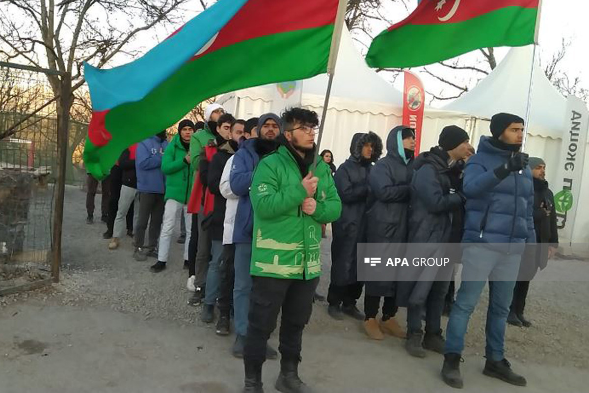 Aksiya iştirakçıları günə Azərbaycan Respublikasının Dövlət Himninin səsləndirməklə başlayıblar.