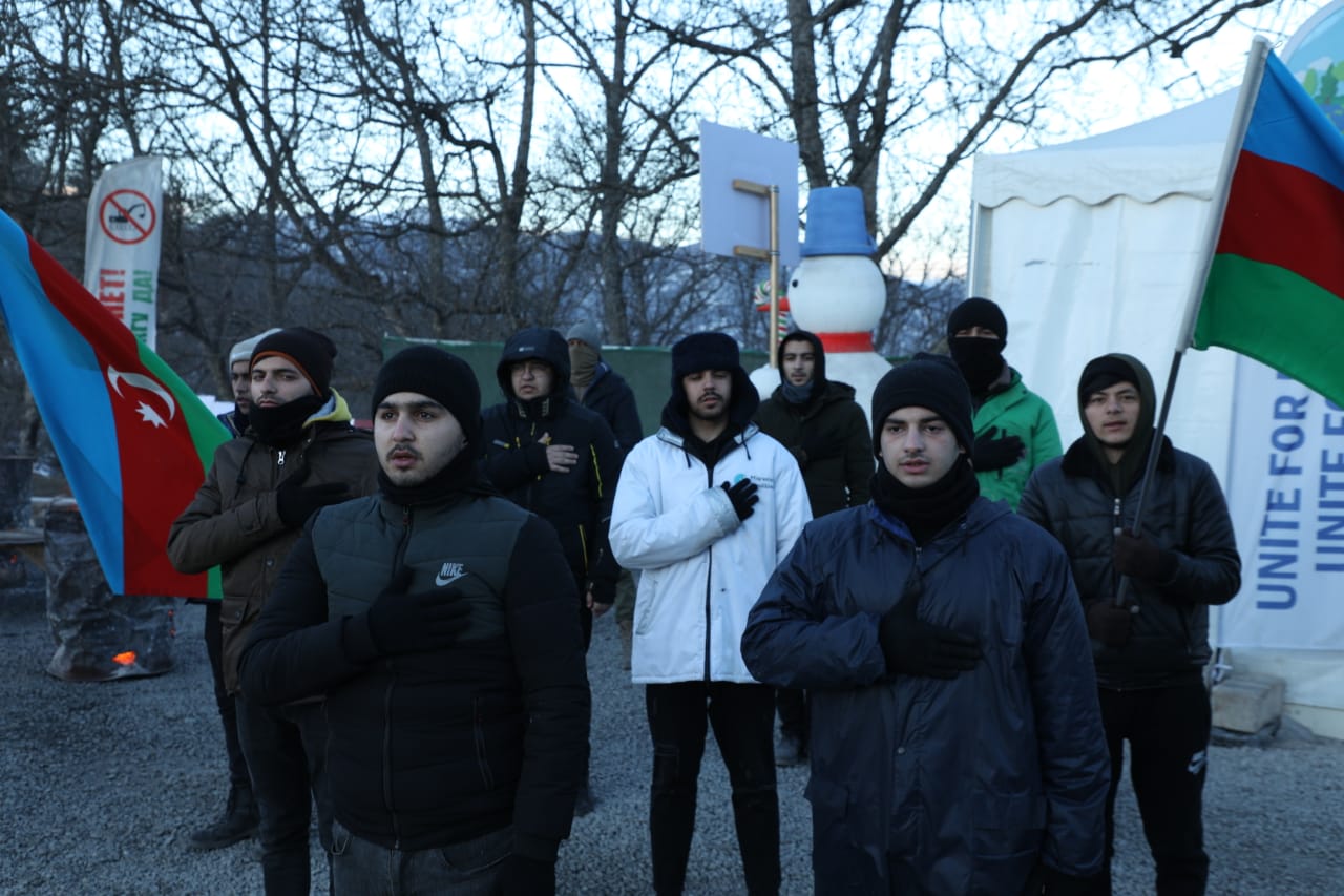 Aksiya iştirakçıları günə Azərbaycan Respublikasının Dövlət Himninin səsləndirməklə başlayıblar.