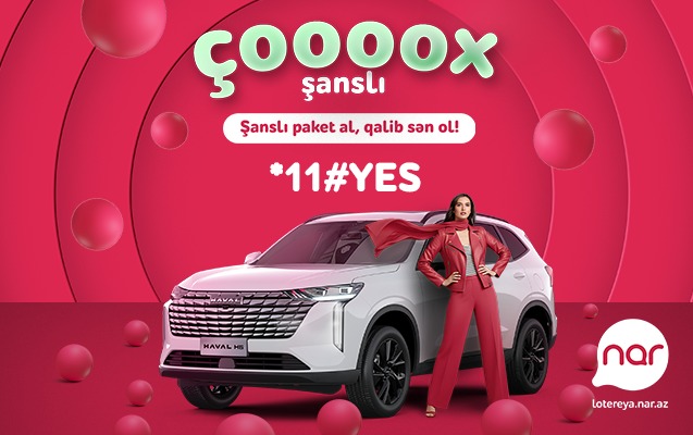Xatırladaq ki, “Çoox Şanslı” lotereyasında iştirak etmək üçün “Nar” abunəçiləri sadəcə balanslarını artıra və ya şans qazandıran şanslıpaketlərdən birini aktivləşdirə bilərlər. Belə ki, 1 AZN-lik şanslı paketə daxil olan 3 şans və 15 şəbəkədaxili danışıq dəqiqəsini *71#YES;