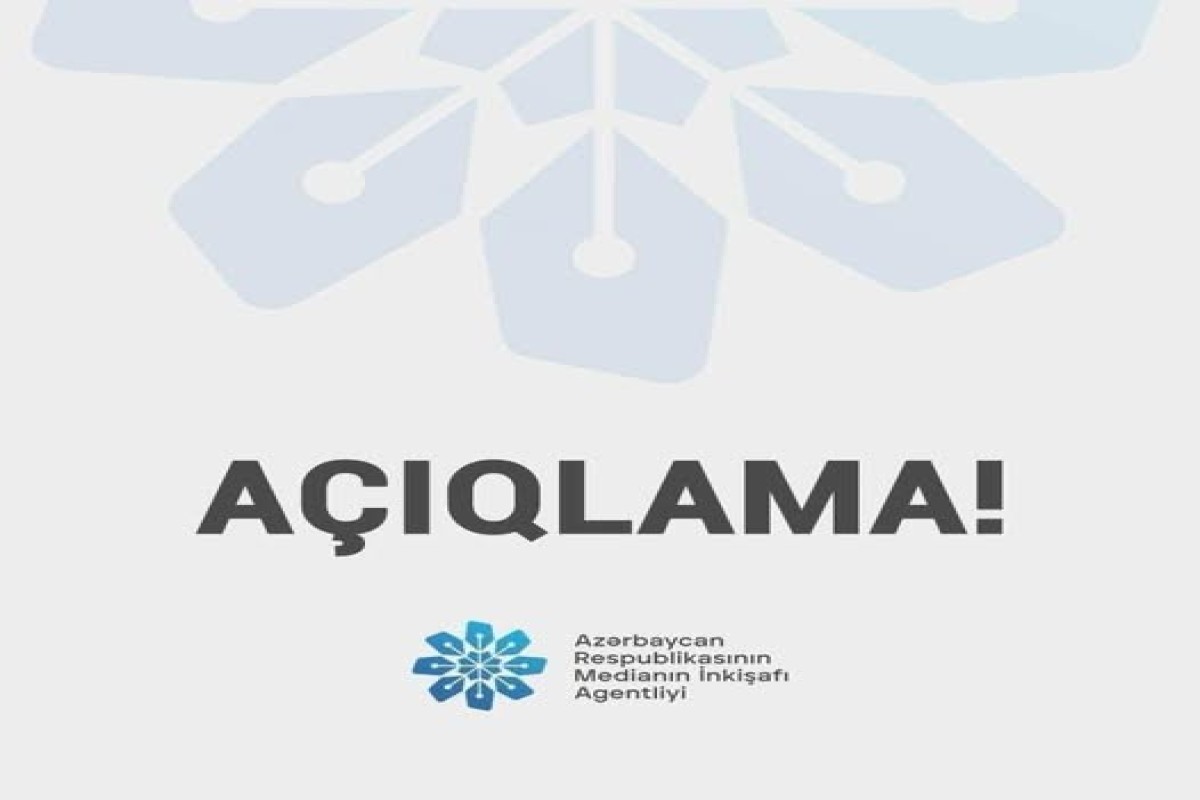 Bu barədə Medianın İnkişafı Agentliyinin (MEDİA) yaydığı açıqlamada bildirilib.