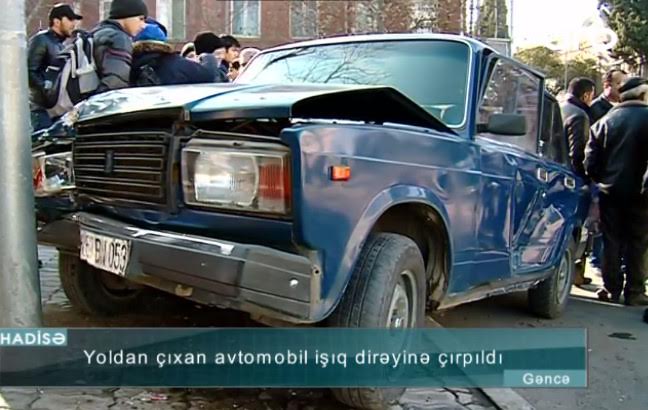 Gəncədə avtomobil yoldan çıxaraq işıq dirəyinə çırpılıb