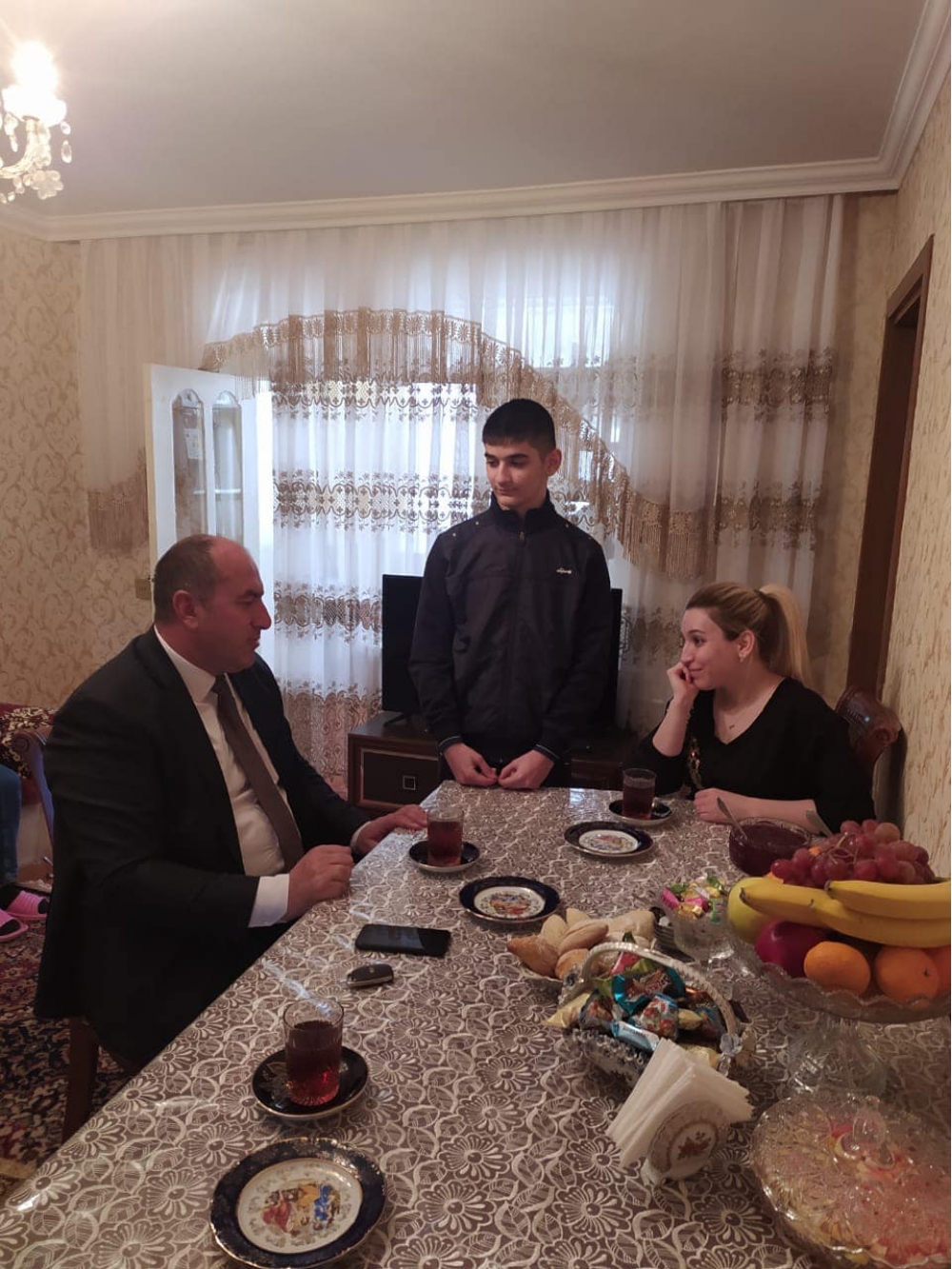 Azərbaycan Respublikası Milli Məclisinin deputatı Anar Məmmədov Naftalan şəhəri Heydər Əliyev Mərkəzində seçiciləri ilə növbəti qəbul zamanı Naftalan şəhər sakini azyaşlı Məftalıyev Sənan Ruslan oğlunun müraciətini dinləyib.