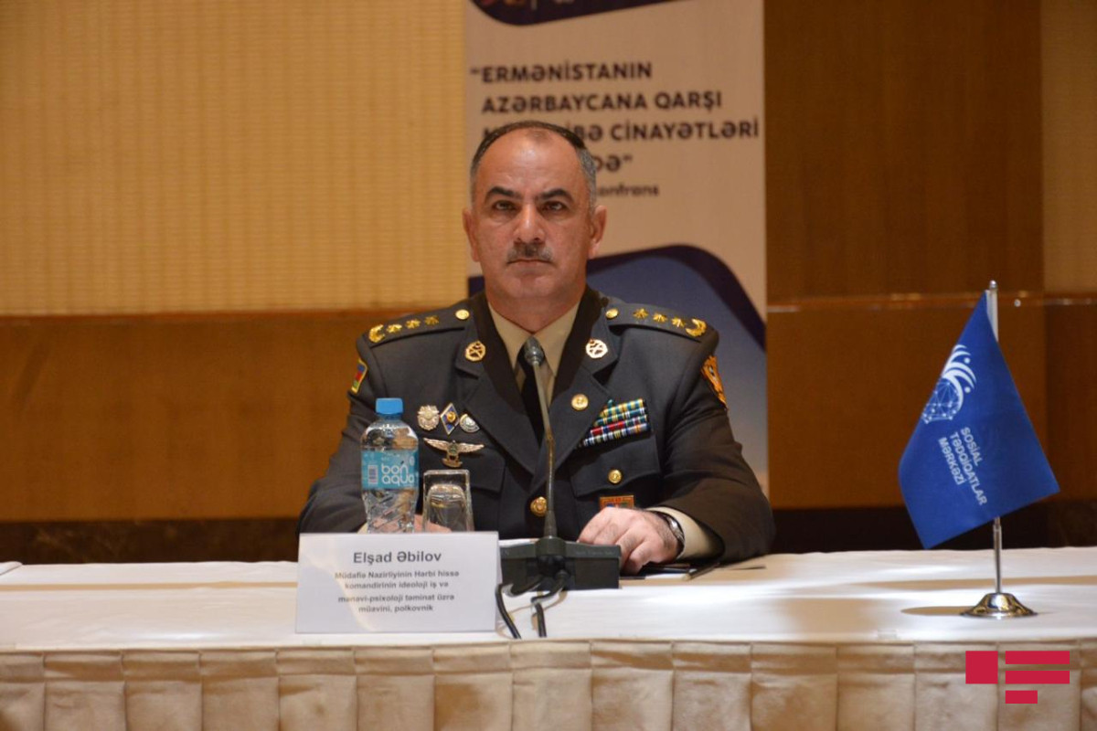 Bunu bu gün Sosial Tədqiqatlar Mərkəzinin (STM) təşkilatçılığı ilə keçirilən “Ermənistanın Azərbaycana qarşı müharibə cinayətləri son 30 ildə” mövzusunda konfransda Müdafiə Nazirliyinin hərbi hissə komandirinin ideoloji iş və mənəvi-psixoloji təminat üzrə müavini, polkovnik Elşad Əbilov bildirib.
