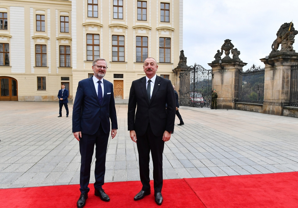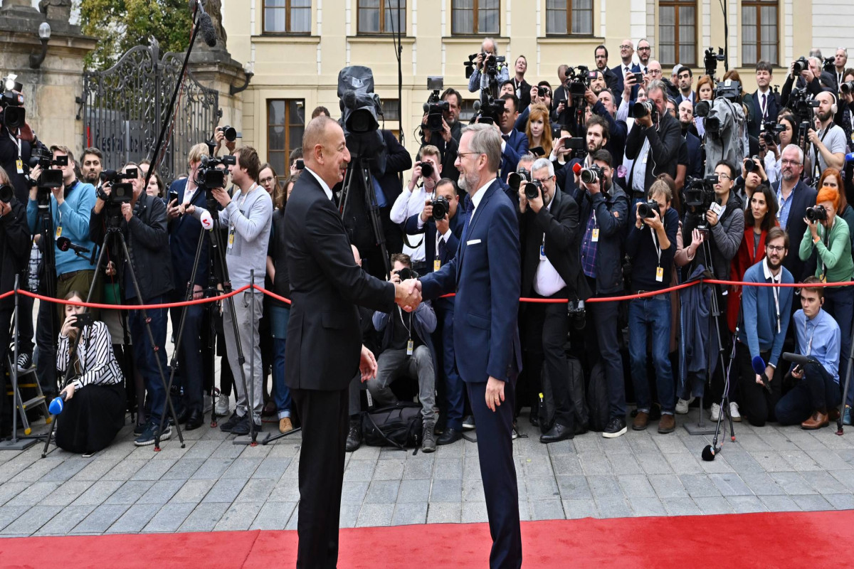 Çex Respublikasının Baş naziri Petr Fiala Azərbaycan Prezidenti İlham Əliyevi, Zirvə Toplantısında iştirak edən digər dövlət və hökumət başçılarını qarşılayıb.