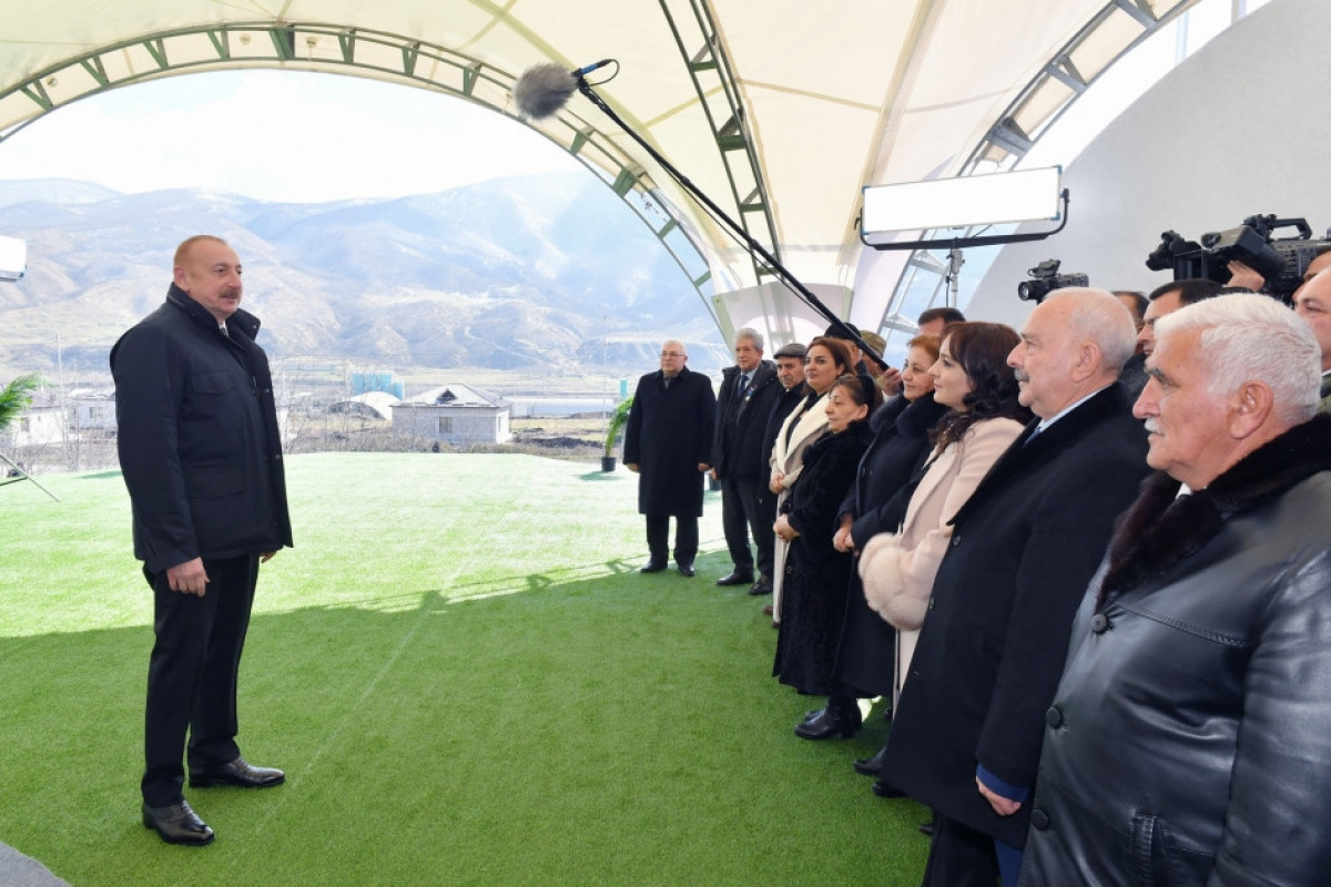 Dövlət başçısı bildirib ki, yüzdən çox köçkün qəsəbəsi salınıb: “Köçkün qəsəbələrinin hamısının açılışlarında mən iştirak etmişəm. Birinci köçkün qəsəbəsi o vaxt Ulu Öndər Heydər Əliyevin iştirakı ilə məhz xocalılılar üçün Ağcakənd qəsəbəsində salınmışdır və o vaxt bizim o qədər də böyük maliyyə imkanlarımız yox idi. Ancaq olan-qalan vəsait də bax o məqsədlər üçün istifadə olundu və bu, bir yol göstəricisi idi. Yəni, Ulu Öndər hamımıza göstərmişdi ki, biz ağır vəziyyətdə yaşayanlar üçün gərək şərait yaradaq. Eyni zamanda, bizim əsas məqsədimiz torpaqların azad edilməsi idi və o vaxt köçkünlərlə çoxsaylı görüşlər əsnasında deyirdim ki, bu şərait yaradılır, bu şərait yaxşıdır, - çadır şəhərcikləri, bilirsiniz ki, sonuncusu 2007-ci ildə ləğv edildi, - ancaq bu, müvəqqəti yaşayış yeridir. Torpaqlar azad olunandan sonra ondan daha yaxşı şərait yaradılacaq sizin doğma torpaqlarınızda və bu gün biz bunu görürük. Artıq beş yaşayış məntəqəsinə keçmiş köçkünlər qayıtmışlar. Bu il o yaşayış məntəqələrinin sayı 20-yə çatacaq. Bu il həm Xocalıda, həm Xankəndidə artıq həyat bərpa ediləcək, o cümlədən bu yaxın yerlərdə yerləşən Malıbəyli, Kərkicahan, Şuşanın Turşsu kəndləri də bərpa ediləcək, Ağdam şəhəri bərpa edilir və gələn il Ağdama da ilk köç başlanacaq, yəni quruculuq işləri geniş vüsət alıb”.