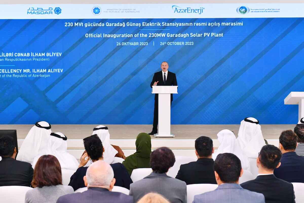 Bu barədə Azərbaycan Prezidenti İlham Əliyev Qaradağ Günəş Elektrik Stansiyasının rəsmi açılış mərasimində çıxışı zamanı bildirib.