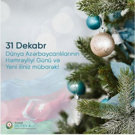 Azərbaycan Respublikasının Prezidenti İlham Əliyev 31 Dekabr - Dünya Azərbaycanlılarının Həmrəyliyi Günü və Yeni il bayramı ilə əlaqədar sosial şəbəkə hesablarında paylaşım edib.