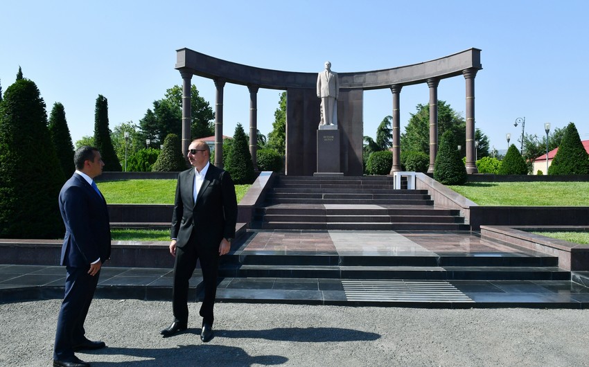 Dövlətimizin başçısı Ümummilli Lider Heydər Əliyevin Şəmkir şəhərində ucaldılmış abidəsini ziyarət edib.