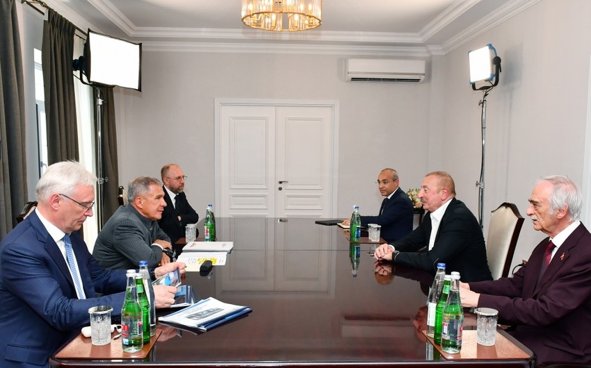 - Hörmətli Rüstəm Nurqaliyeviç, bir daha xoş gəlmisiniz. Mən yeni görüşümüzə çox şadam. Əlbəttə, bu gün birgə Mərkəzin açılışı əlamətdar hadisədir. Lakin daha vacibi bizim sizinlə ünsiyyətimizdir. Mən bizim həm Kazanda, həm də Bakıda görüşlərimizi məmnuniyyətlə yada salıram. Şadam ki, Sizinlə müəyyən etdiyimiz hər şey, o cümlədən “Araz Vadisi” Sənaye Parkının birinci obyekti, - bu, qardaş Tatarıstanın obyektidir, - icra olunur. Yəni, biz ərazilərin bərpası işinə belə münasibətə görə çox minnətdarıq. Əlbəttə ki, biz müəyyənləşdirdiyimiz əməkdaşlıq proqramının tam həyata keçəcəyinə ümidvarıq.