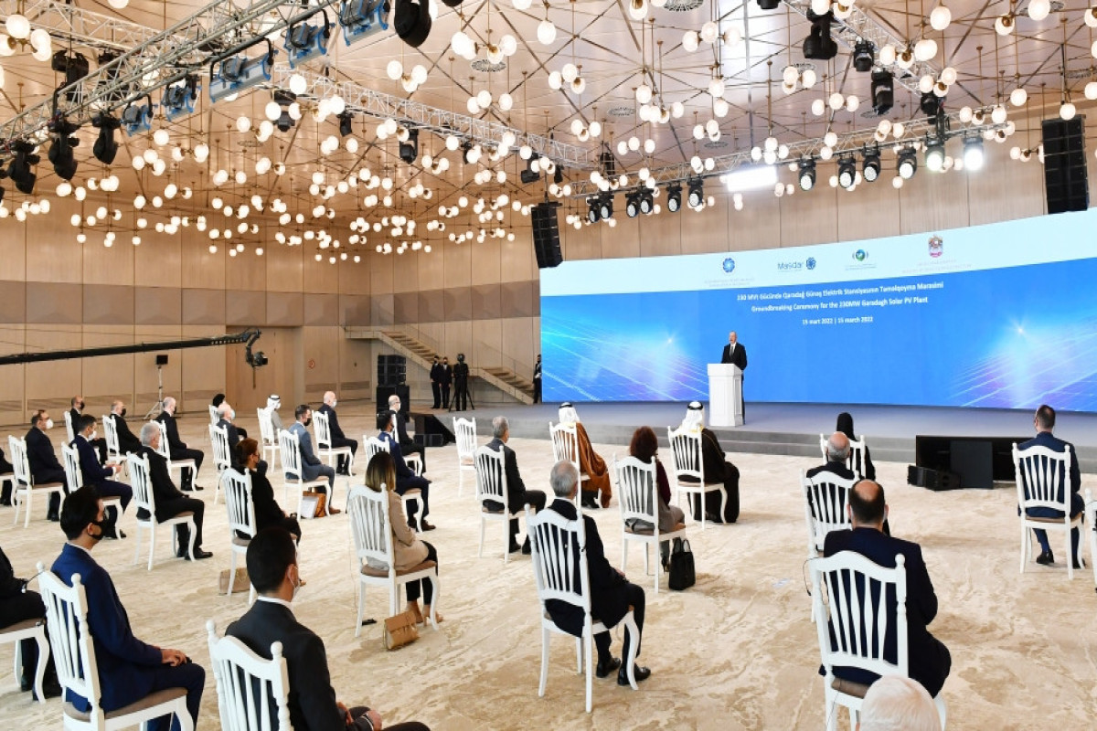 Bu gün ölkəmizin energetika sahəsində çox əlamətdar bir gündür. Bu gün Qaradağ Günəş Elektrik Stansiyasının təməli qoyulur. Bu münasibətlə sizi və bütün Azərbaycan xalqını ürəkdən təbrik etmək istəyirəm. Doğrudan da çox önəmli bir hadisədir, 230 meqavat gücündə olan bu stansiya həm ölkəmizin enerjiyə artan tələbatını ödəyəcək, eyni zamanda, ixrac imkanlarımızı da genişləndirəcək.
