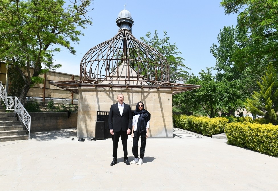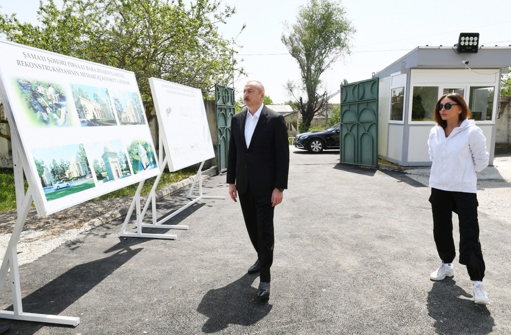 İlham Əliyev və birinci xanım Mehriban Əliyeva Şamaxıda Pir Ömər Sultan ziyarətgahında bərpa-konservasiya işləri ilə tanış olublar