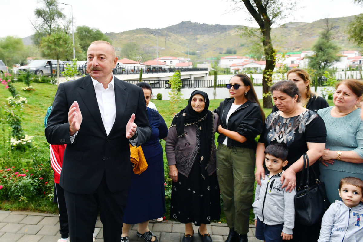 Prezident İlham Əliyev: Siz dünən gəlmisiniz, birinci köçənlərdənsiniz. 31 ildən sonra artıq vətəndaşlarımız öz dədə-baba torpaqlarına qayıdırlar. Bundan böyük xoşbəxtlik ola bilməz. Əminəm ki, siz də hər zaman inanırdınız ki, bu gün gələcək.