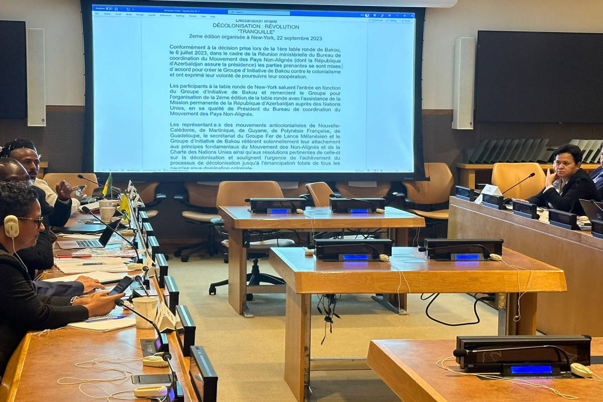 Yeni Kaledoniya, Martinika, Fransız Qvianası, Fransız Polineziyası, Qvadelupa müstəqillik və millətçi hərəkatlarının nümayəndələri, Melaneziya Təşəbbüs Qrupunun katibliyi və Bakı Təşəbbüs Qrupunun nümayəndələri Birləşmiş Millətlər Təşkilatının və Qoşulmama Hərəkatının Nizamnaməsinin əsas prinsiplərinə, həmçinin, dekolonizasiyaya dair müvafiq qətnamələrə sadiq olduqlarını bildirib və müstəmləkəçilik altında olan bütün millətlərin azad edilməsindən əvvəl dekolonizasiya prosesinin tamamlanmasının vacibliyini bir daha vurğulayıblar.