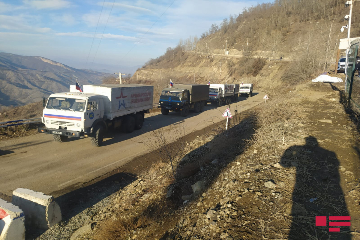 Laçın-Xankəndi yolunda aksiya keçirilən ərazidən Rusiya sülhməramlılarının beş təminat avtomobili Xankəndindən Laçın istiqamətinə keçib.