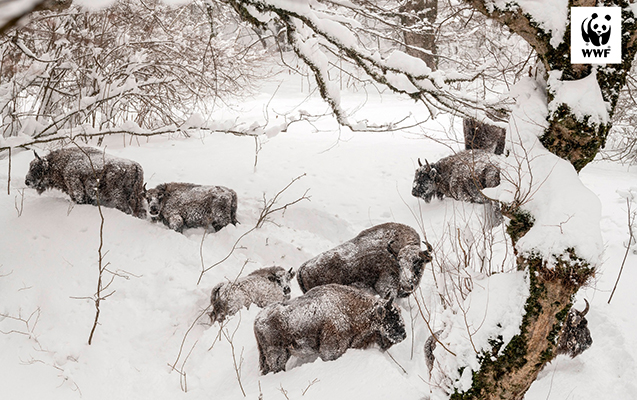 Fotoqraf Emil Xəlilov tərəfindən lentə alınan kadrlarda vəhşi təbiətin möhtəşəmliyi və zubrların qar örtüyü altında həyatını davam etdirdiyi müşahidə edilir.