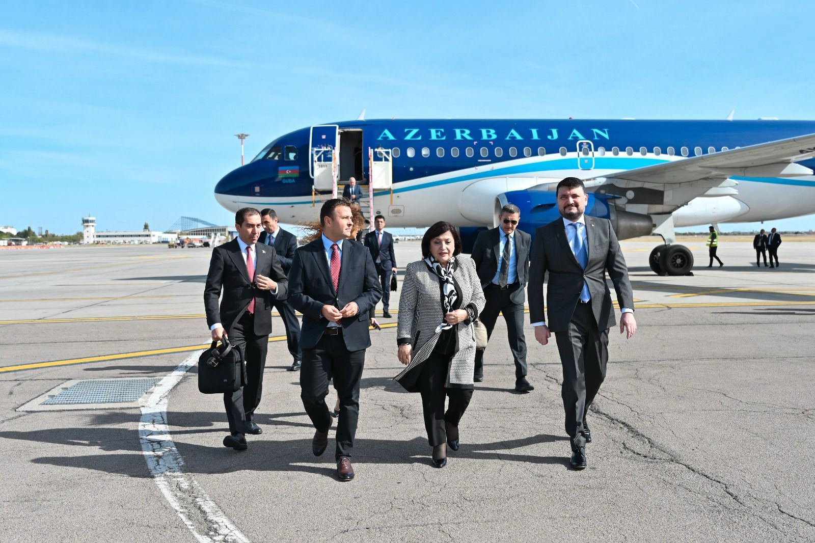 Buxarestin “Henri Koanda” Beynəlxalq Hava limanında nümayəndə heyətini Rumıniya Parlamenti Deputatlar Palatasının sədr müavini Vasile-Daniel Suşu, Azərbaycanın Rumıniyadakı səfiri Hüseyn Nəcəfov və digər rəsmi şəxslər qarşılayıblar.
