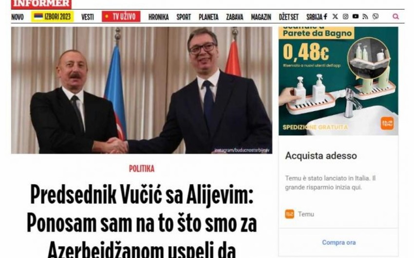 Azərbaycan Prezidenti İlham Əliyevin Serbiyaya işgüzar səfəri, iştirak etdiyi tədbirlər və keçirdiyi görüşlər yerli mətbuatın diqqət mərkəzindədir.