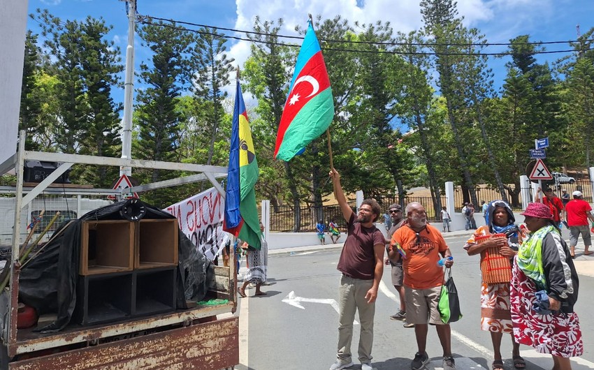 Aksiyada Azərbaycan və Yeni Kaledoniya bayraqları dalğalandırılıb.